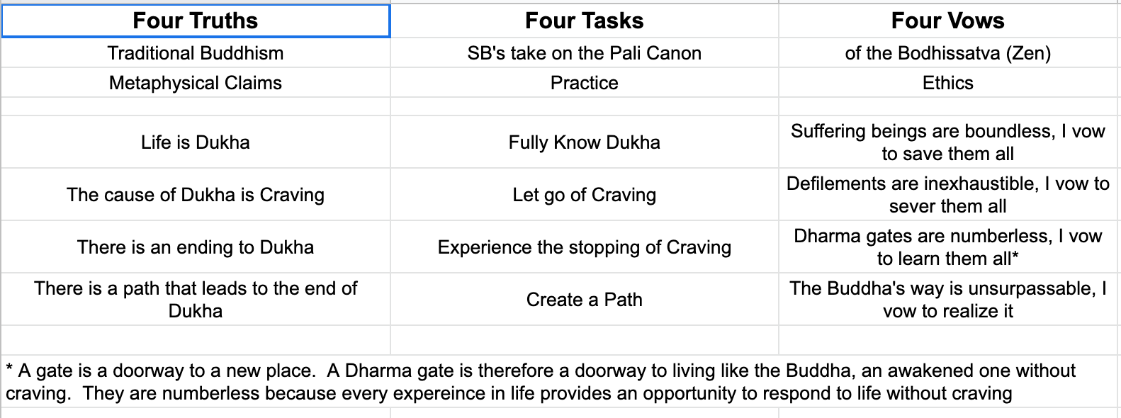 You may wish to examine this chart as a reference to the comparison of the Four Truths, the Four Tasks, and the Four Vows: